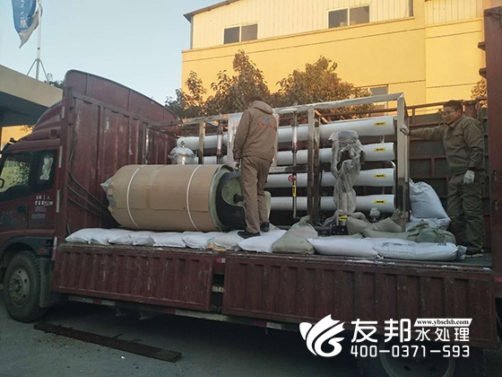 2018年4月26日今天的天氣涼爽。友邦小編帶您來(lái)到鄭州友邦的發(fā)貨現(xiàn)場(chǎng),這套10噸軟化水和5噸反滲透水處理設(shè)備是發(fā)往太原的用于精細(xì)化工行業(yè)。鄭州友邦根據(jù)當(dāng)?shù)卦闆r和出水要求量身定制此套設(shè)備。