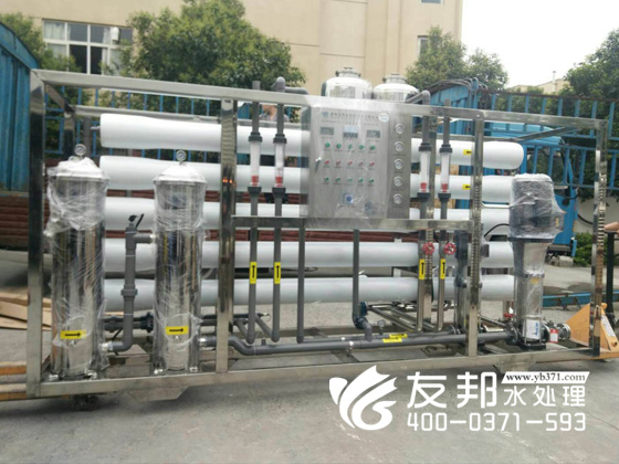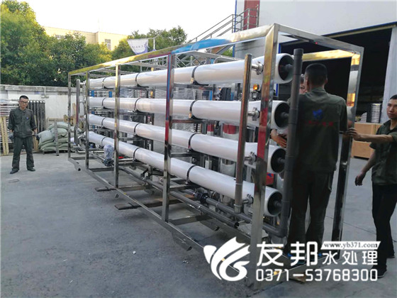 河南友邦型號(hào)為YB-CJS-005的反滲透純凈水設(shè)備正在裝車發(fā)往山東濟(jì)南。 5噸每小時(shí)小型反滲透純凈水設(shè)備就是每小時(shí)大出水量是5噸,由于該設(shè)備的出水量比較小,一般應(yīng)用在