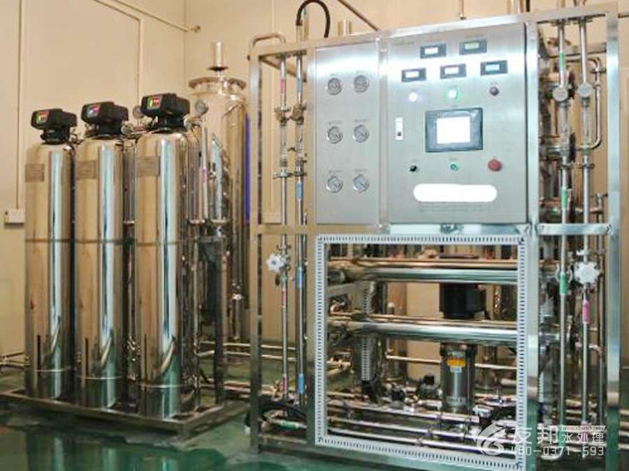 2. 原水箱→原水泵→全自動多介質過濾器→全自動活性炭過濾器→全自動軟水器→保安過濾器→高壓泵→一級反滲透主機→純水箱→EDI系統→儲水罐→純水輸送泵→紫外線殺菌器→濾菌器→用水點